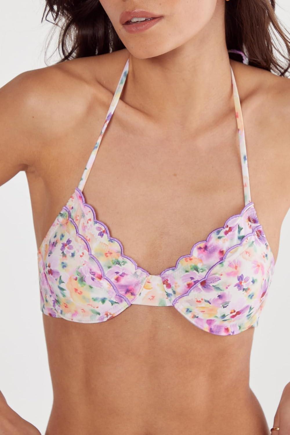 Ditsy Floral Embroidered Scallop Underwire Bikini(Lilac)