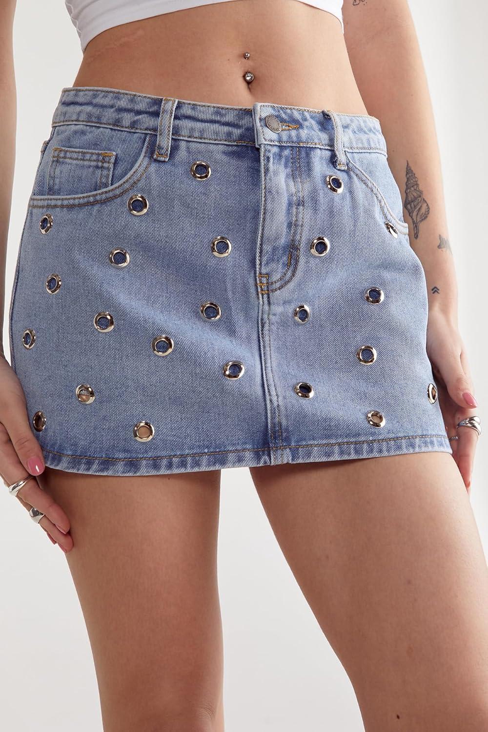 Get your hands on our newest Eyelet Detail Denim Skirt(Light Wash) and enjoy a limited-time discount offer.