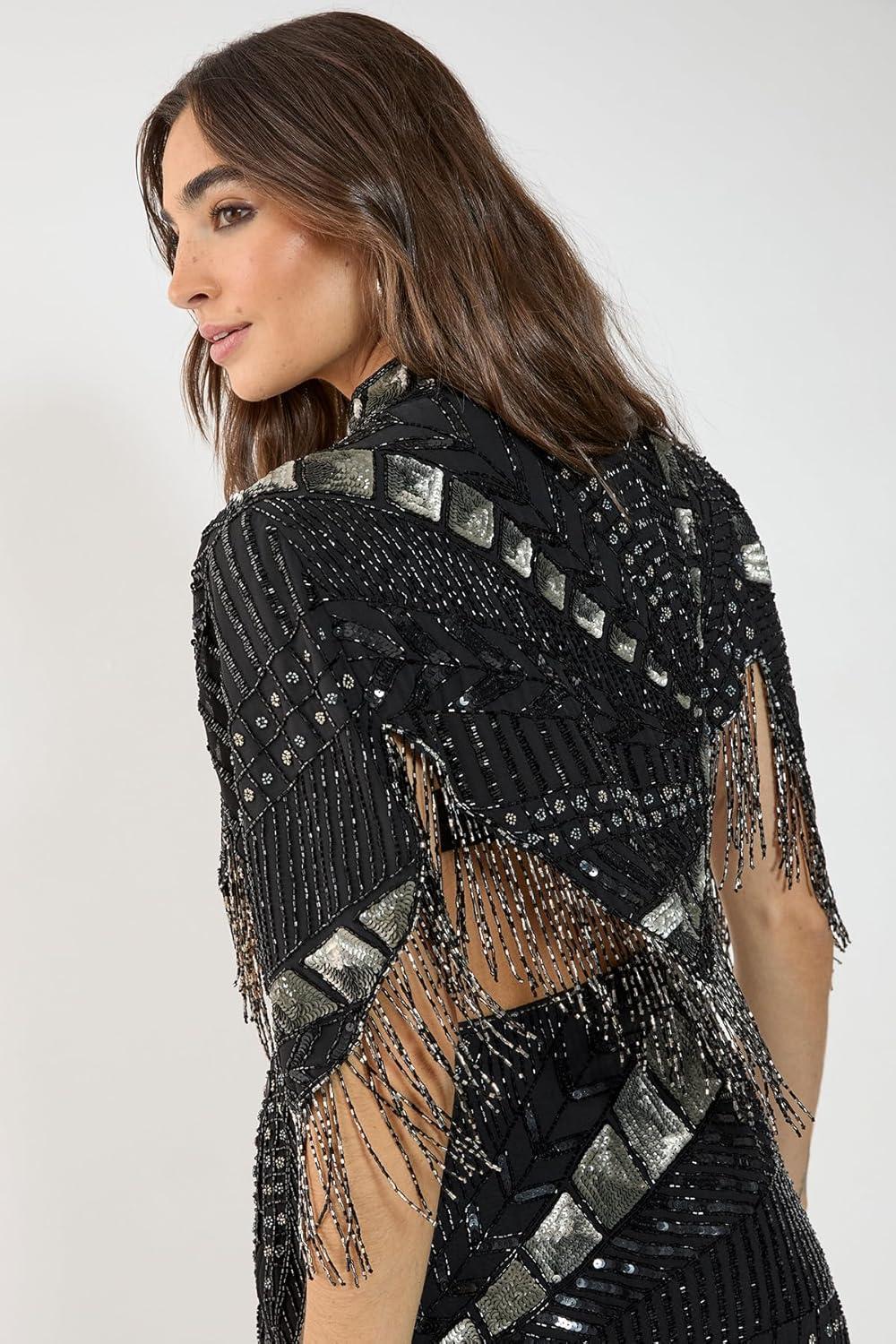 Nasty Gal Hand Embellished Panelled Tassel Cape