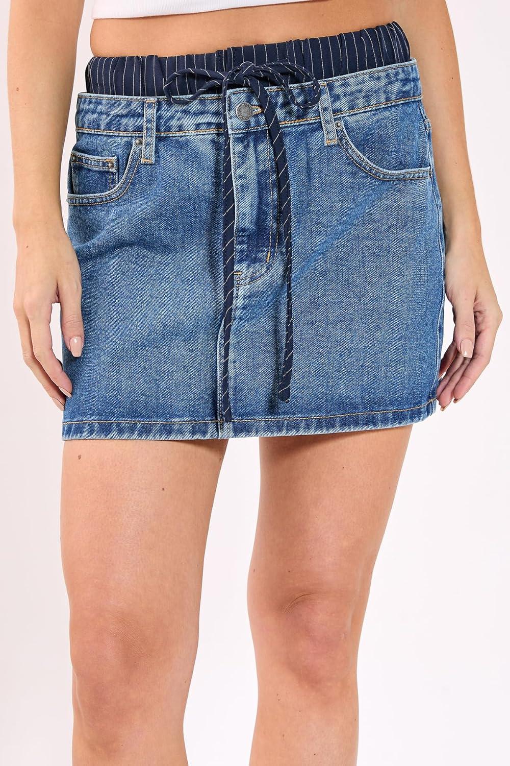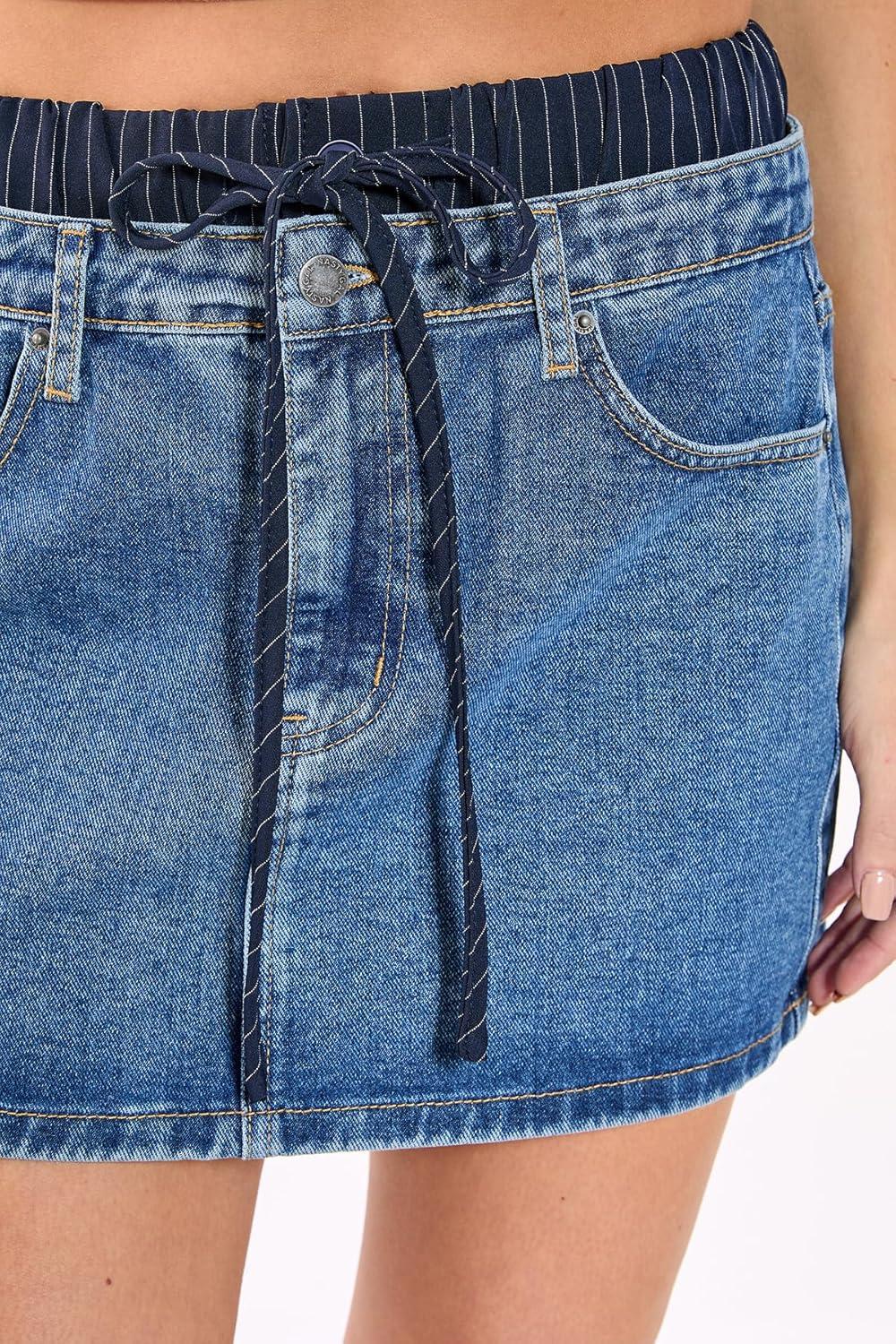 Nasty Gal Women’s Denim Stripe Boxer Waistband Mini Skirt(Authentic Midwash)