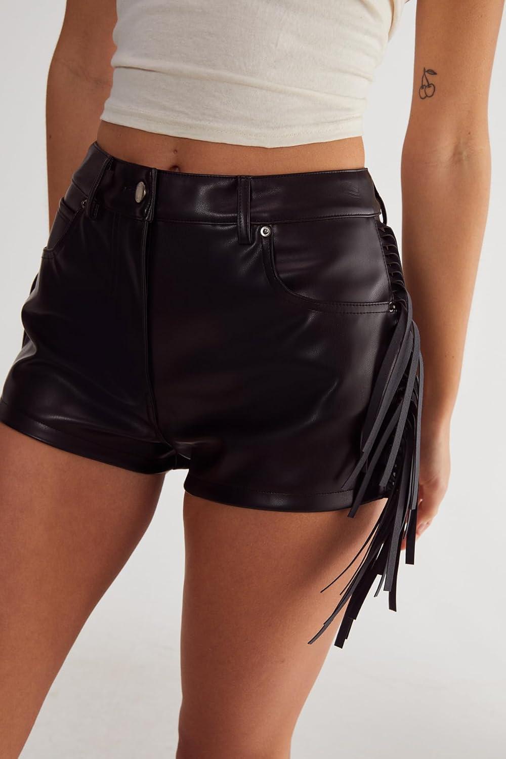 Nasty Gal Women’s Faux Leather Fringe Shorts(Black)