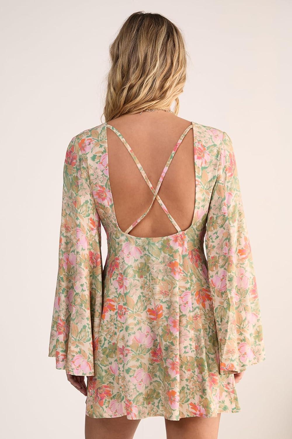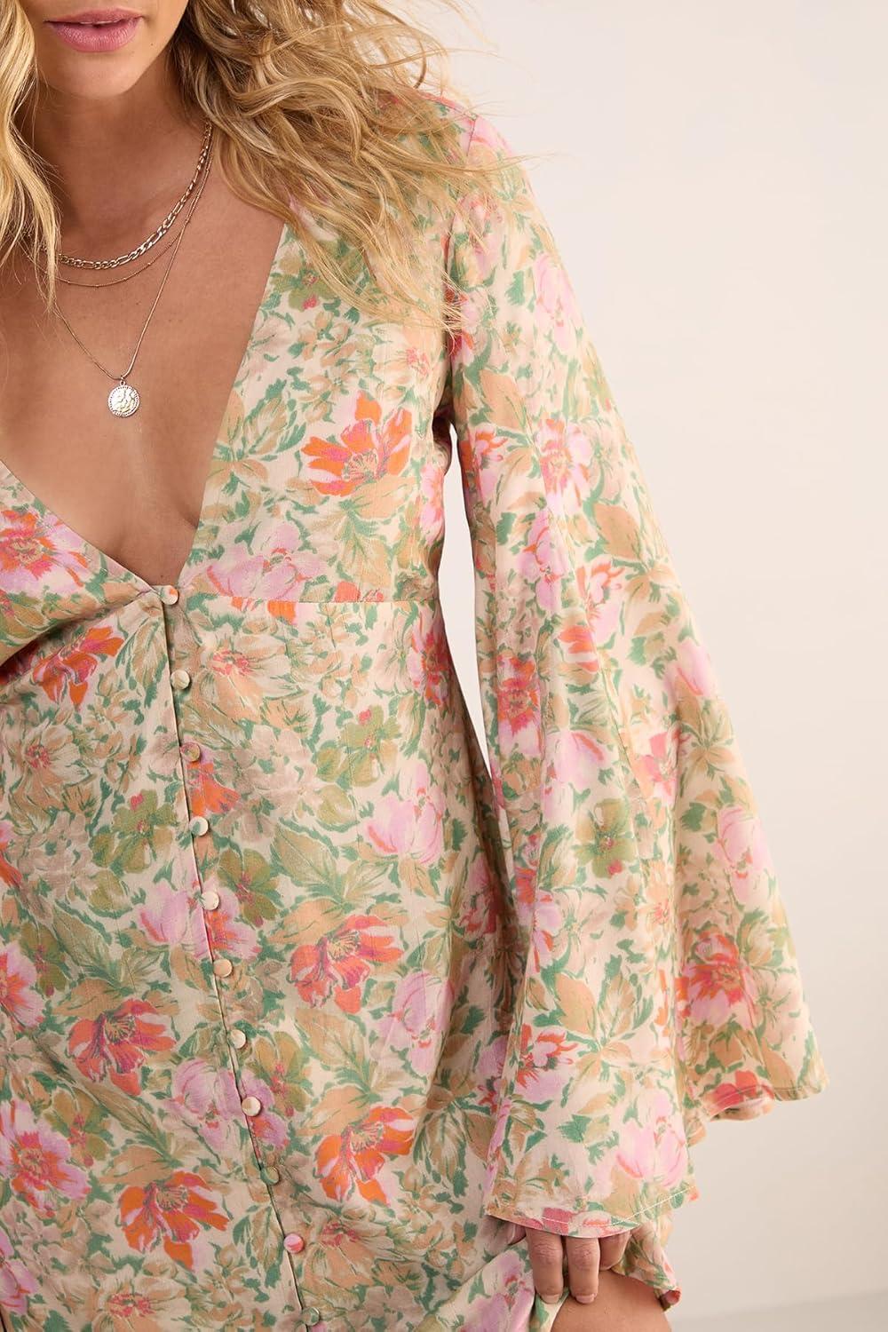 Nasty Gal Women’s Vintage Floral Button Through Extreme Flared Sleeve Mini Dress(Green)
