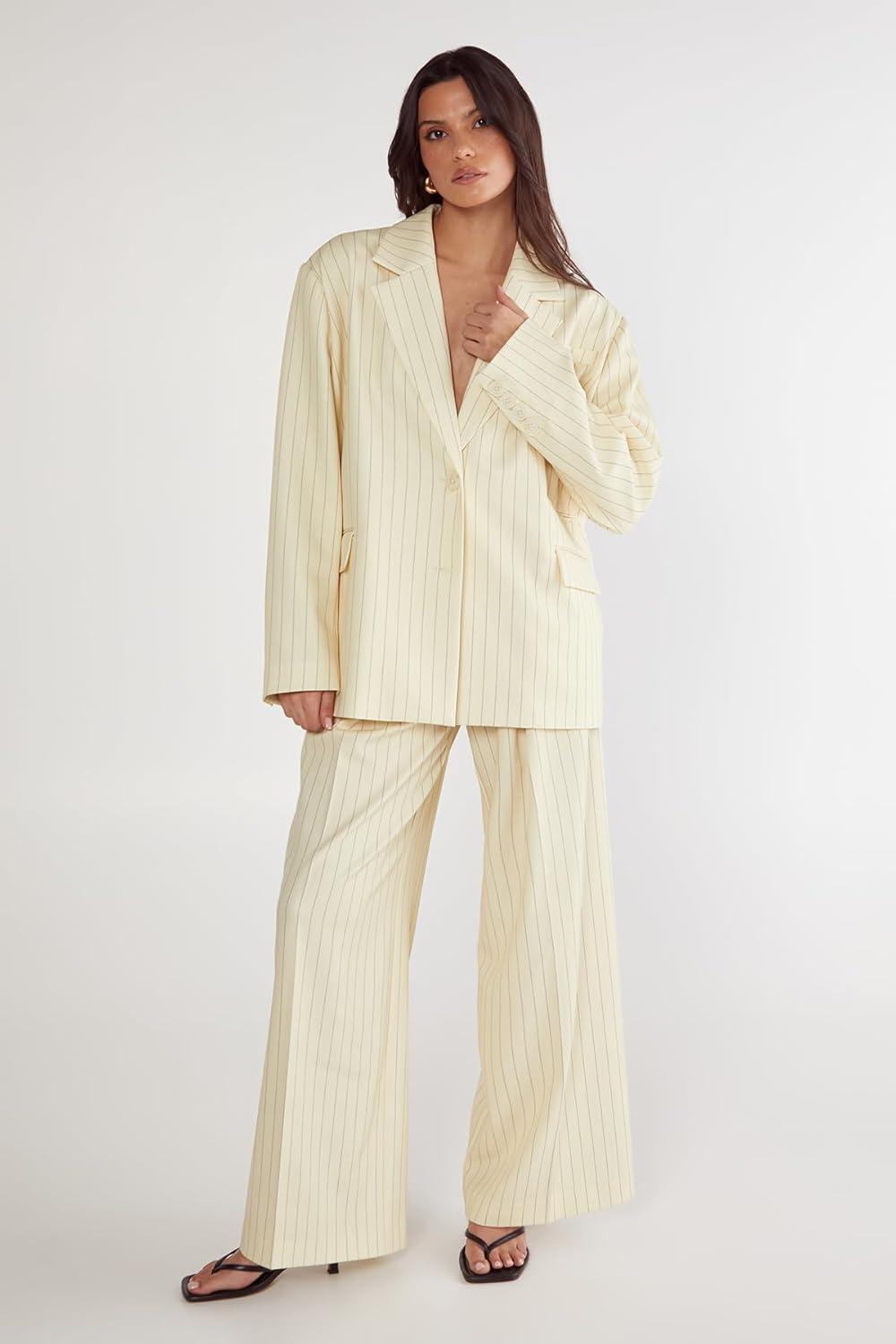 Women’s Butter Pinstripe Tailored Blazer(Butter)