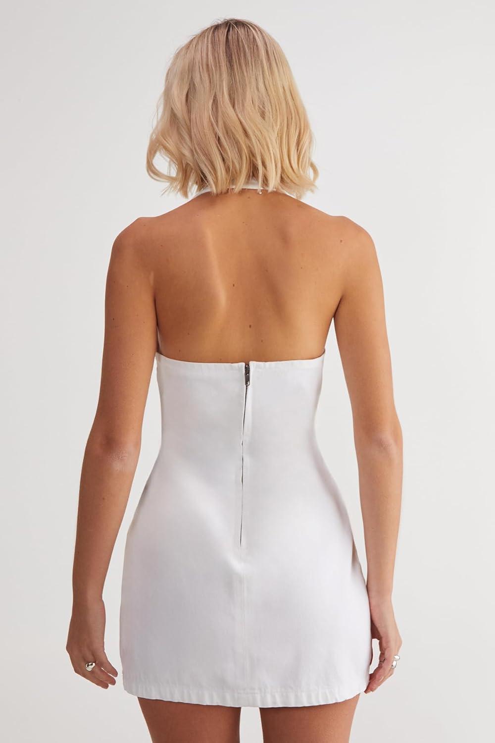 Women’s Denim Halterneck Mini Dress(White)