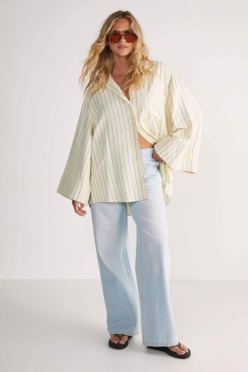 This Nasty Gal textured stripe shirt redefines casual sophistication with its contemporary oversized proportions. The dramatic wide cuffs and boxy silhouette create a fashion-forward look that's both comfortable and striking. Style it with light-wash wide-leg jeans and flat sandals for daytime coffee dates, or try it half-tucked into high-waisted pants for family gatherings. The textured fabric adds dimension while the classic stripe pattern ensures timeless appeal. For cooler days, layer over a fitted vest top and pair with your favourite denim and trainers. This versatile piece works brilliantly for weekend brunches, casual shopping trips, or relaxed garden parties – simply accessorise with statement sunglasses and delicate jewellery to complete your look.