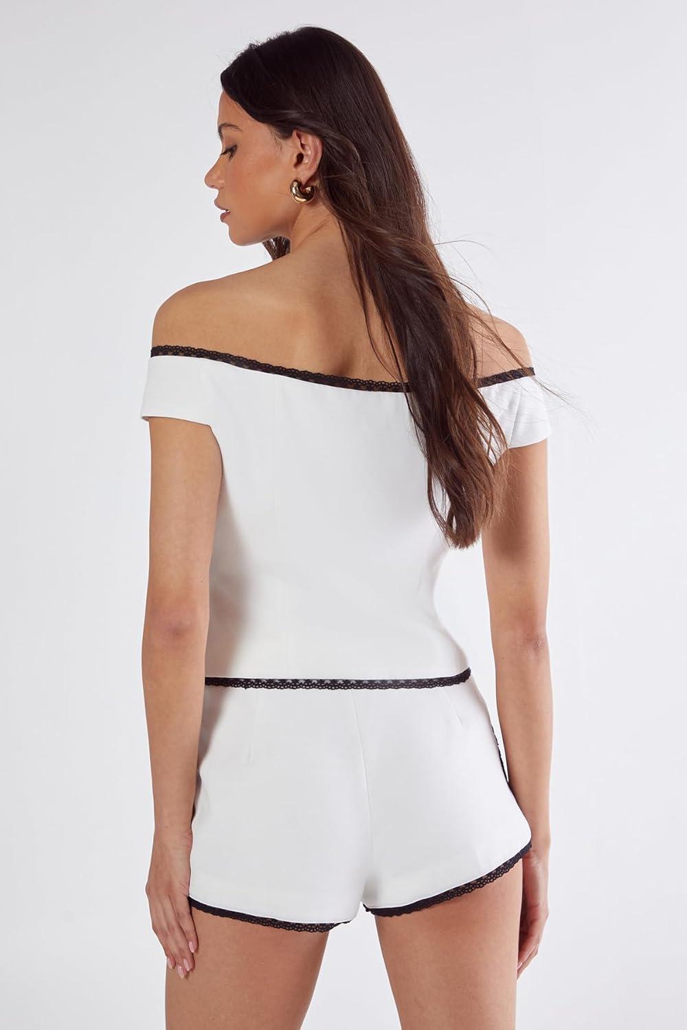 This striking NastyGal bardot top combines sophistication with allure, perfect for making an impression on your next night out. The tailored structure creates a defined silhouette whilst the off-shoulder design adds a touch of feminine charm. Style with strappy heels as shown for an evening at the cocktail bar, or dress down with chunky trainers for a contemporary contrast. The button-through front allows for versatile styling-wear fully fastened for a polished look or slightly undone for a more relaxed feel. The coordinating shorts create a cohesive ensemble that's ideal for summer soirées or club nights. Complete your look with statement hoop earrings and a sleek clutch bag to project confidence and style wherever the night takes you.