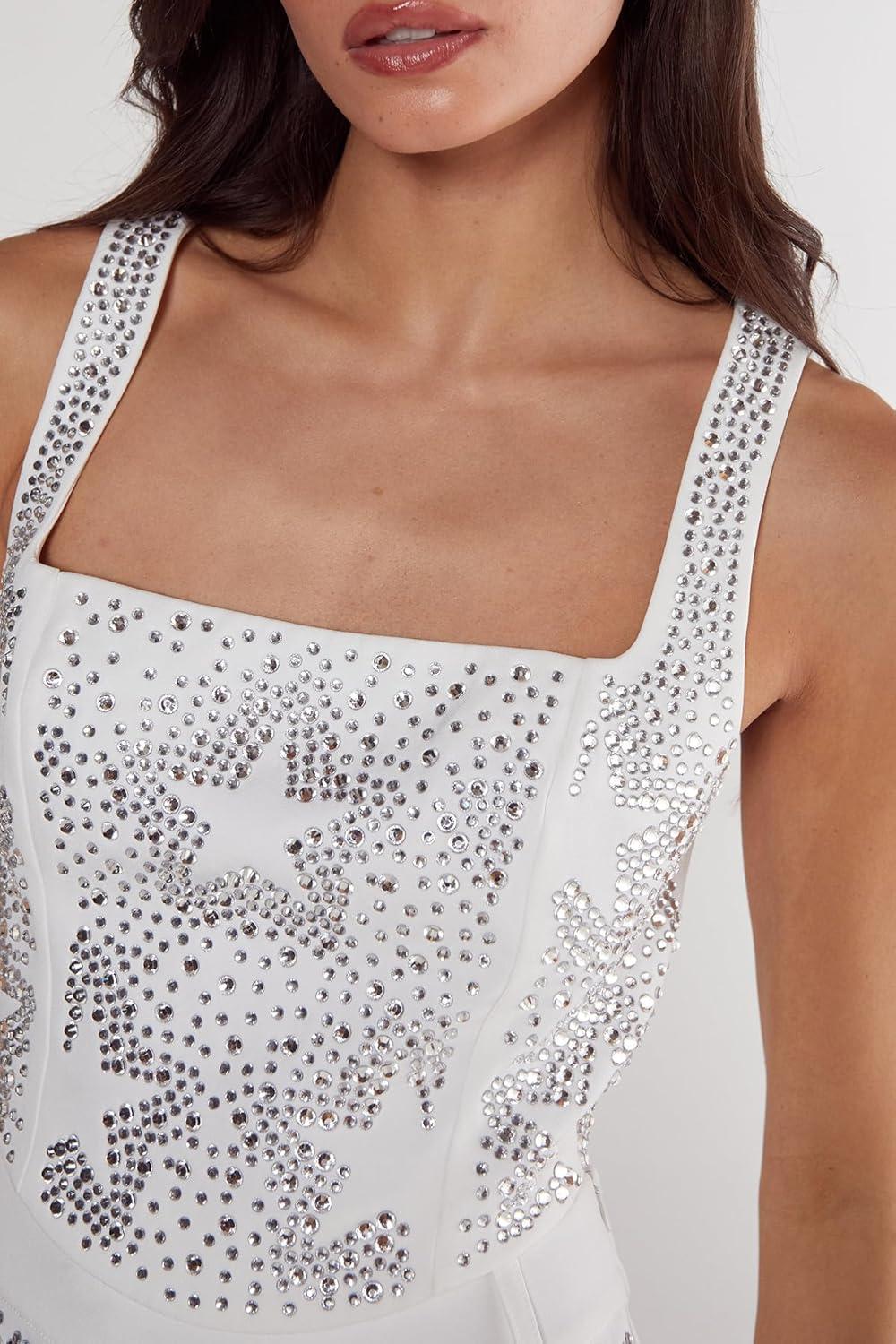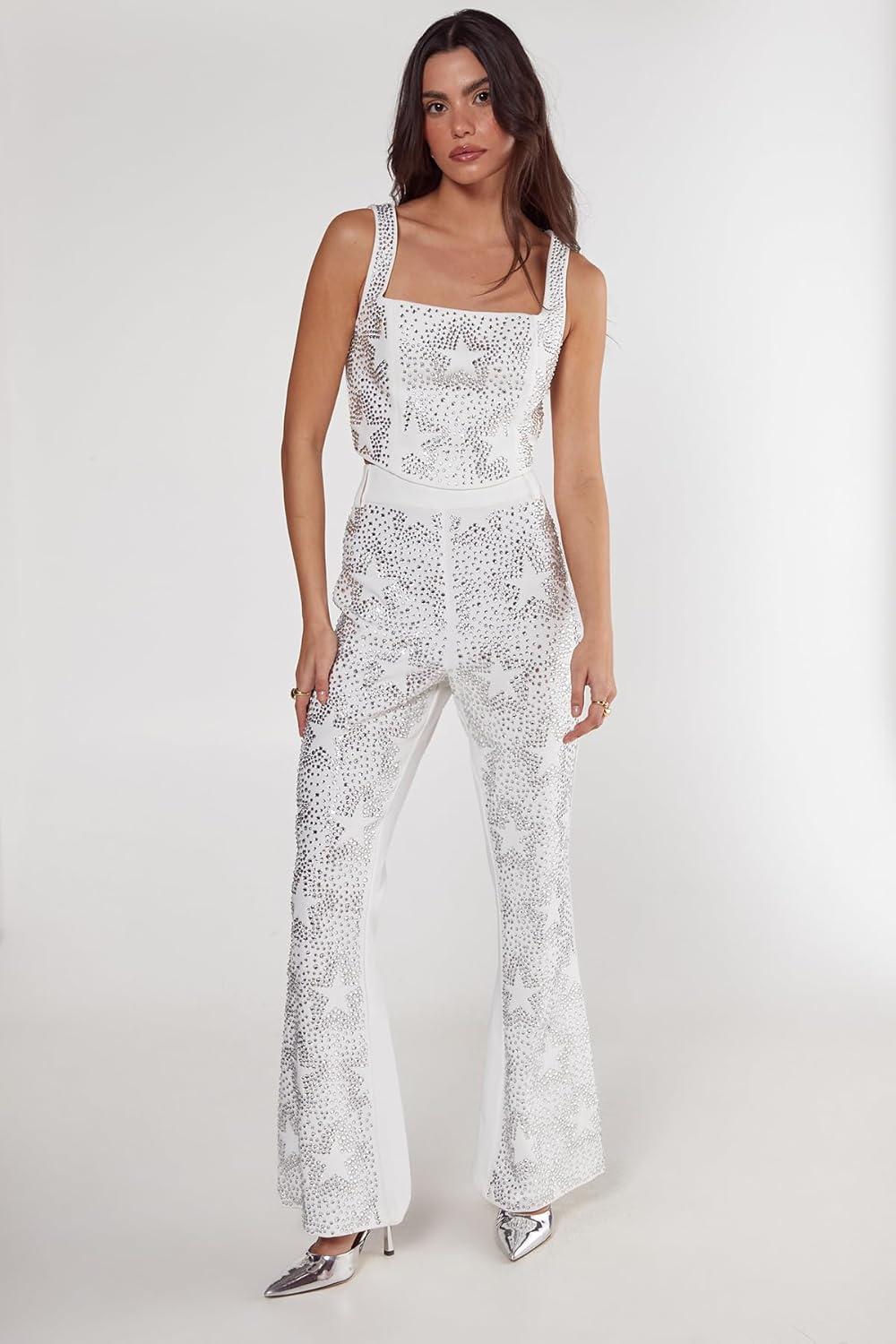 Command attention in this show-stopping NastyGal corset top that combines glamour with contemporary styling. The eye-catching star diamante pattern radiates light-catching brilliance, making it the ultimate statement piece for your night-out wardrobe. Style with the matching pants as seen on our model for a coordinated ensemble that's guaranteed to turn heads, or pair with high-waisted jeans and strappy heels for a more casual yet sophisticated look. The structured design sculpts and defines your silhouette while the square neckline frames your décolletage beautifully. Perfect for cocktail parties, club nights or special celebrations where you want to shine. The versatile design transitions effortlessly from evening drinks to dancing until dawn, ensuring you remain the centre of attention throughout the night.
