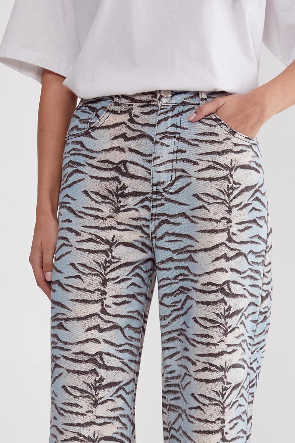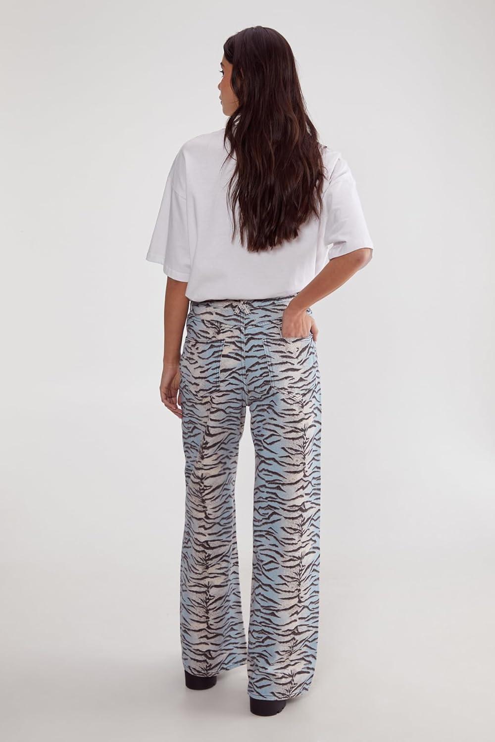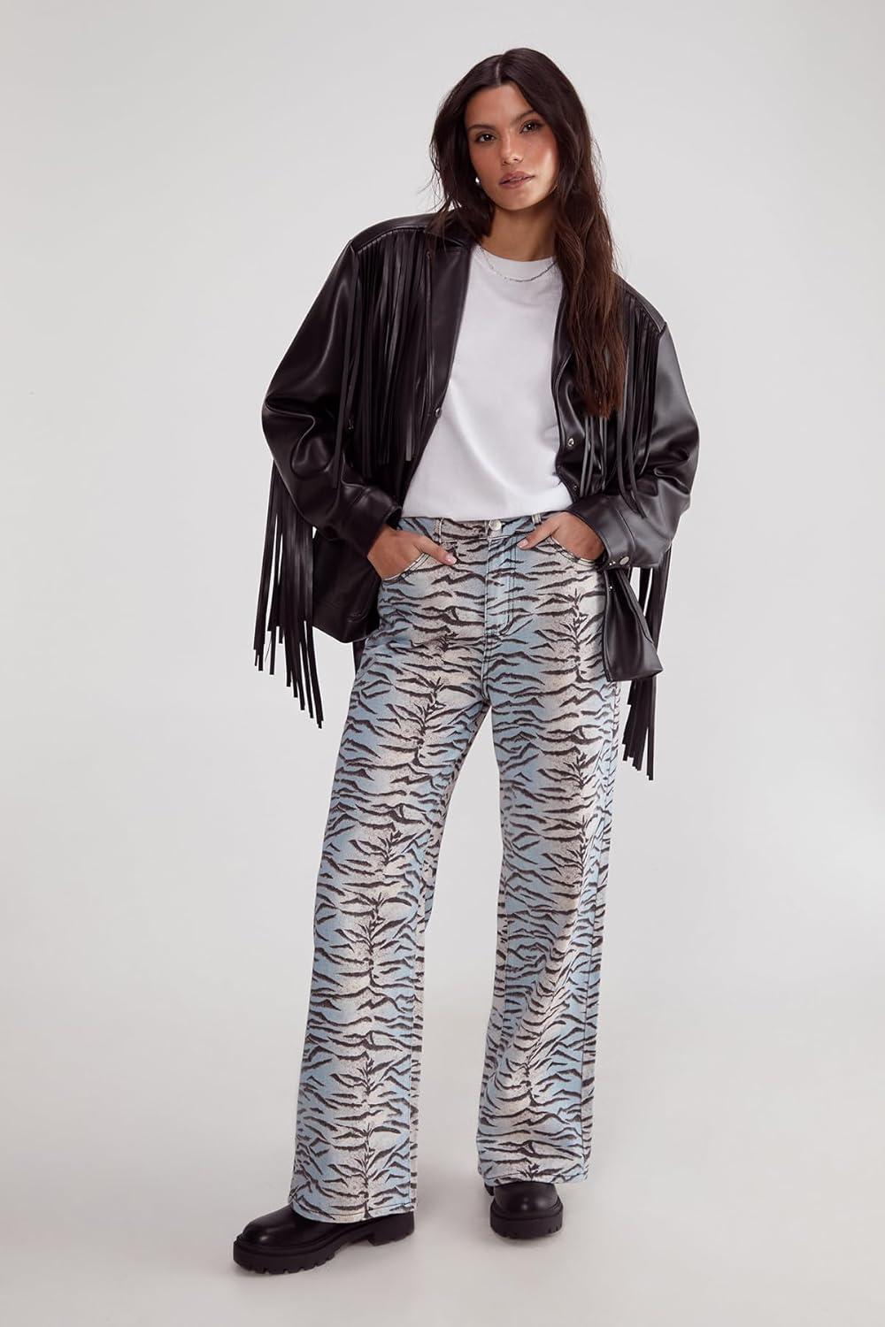 Women’s Tiger Print Denim Wide Leg Jean(Multi)