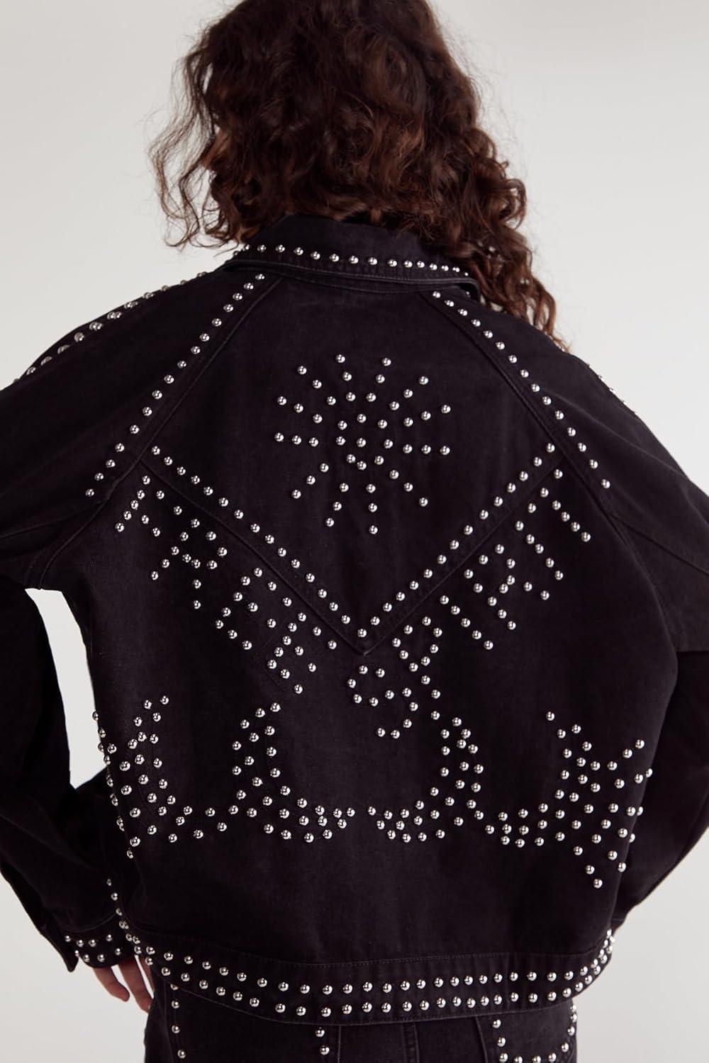 Women’s Western Studded Denim Jacket(Black)